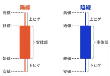- 陰線(いんせん): 終値が始値よりも低い場合に黒または暗い色で表示されます。「売り」の力が強いことを示唆します。