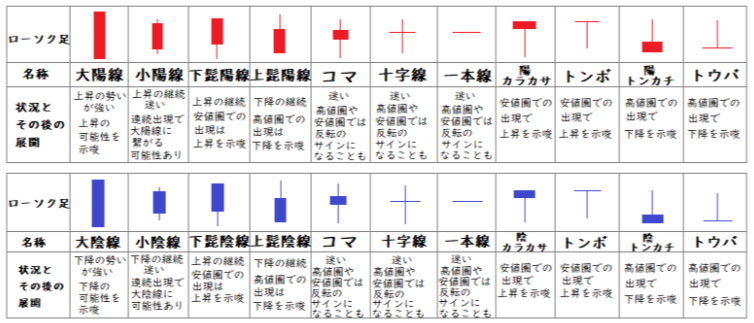 ロウソク足には様々な形状があり、それぞれが特定の意味合いを持つと考えられています。ここでは、代表的なパターンをいくつかご紹介します。